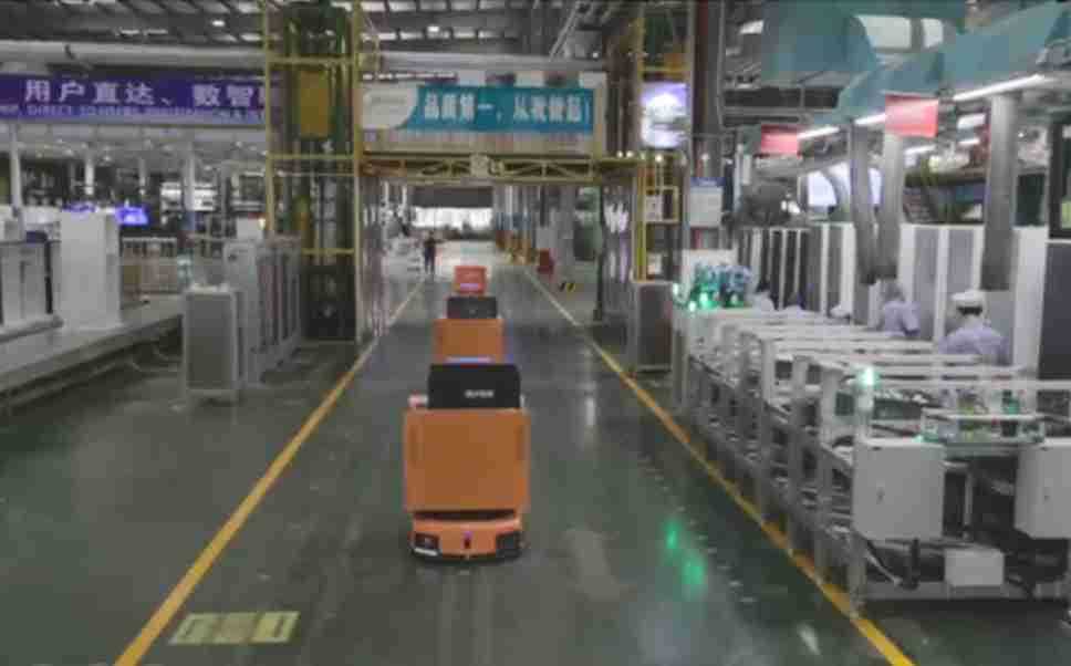为车载冰箱物流配送打造的智能解决方案,,,,包含产中物流通过潜伏举升AMR搬运至线边,,,,产后成品物流智能仓储,,,,流程包含产中物流智能齐套入库,,,线边安灯叫料AMR智能配送至线边,,成品入库、、、出库,,,,通过无人堆高车机器人,,,智能仓储管理替代人工作业管理,,实现更高存储、、、、更高效率、、、更具柔性化的解决方案。。。。